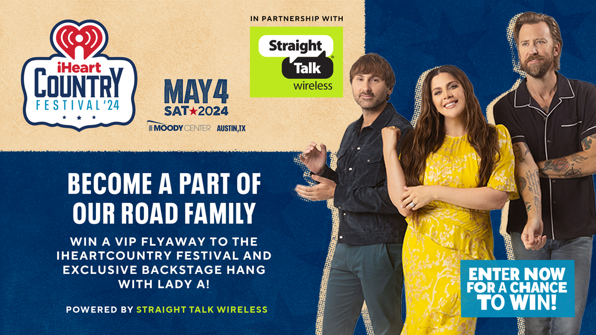 iHeartRadio is teaming up with Straight Talk Wireless to send one lucky winner and a friend to the 2024 iHeartCountry Festival where they will experience an exclusive backstage hangout alongside the iconic, Lady A! The winner will also receive two tickets to the festival, two round-trip airfare tickets, and a two-night hotel stay for the weekend.